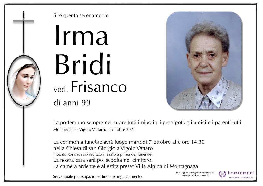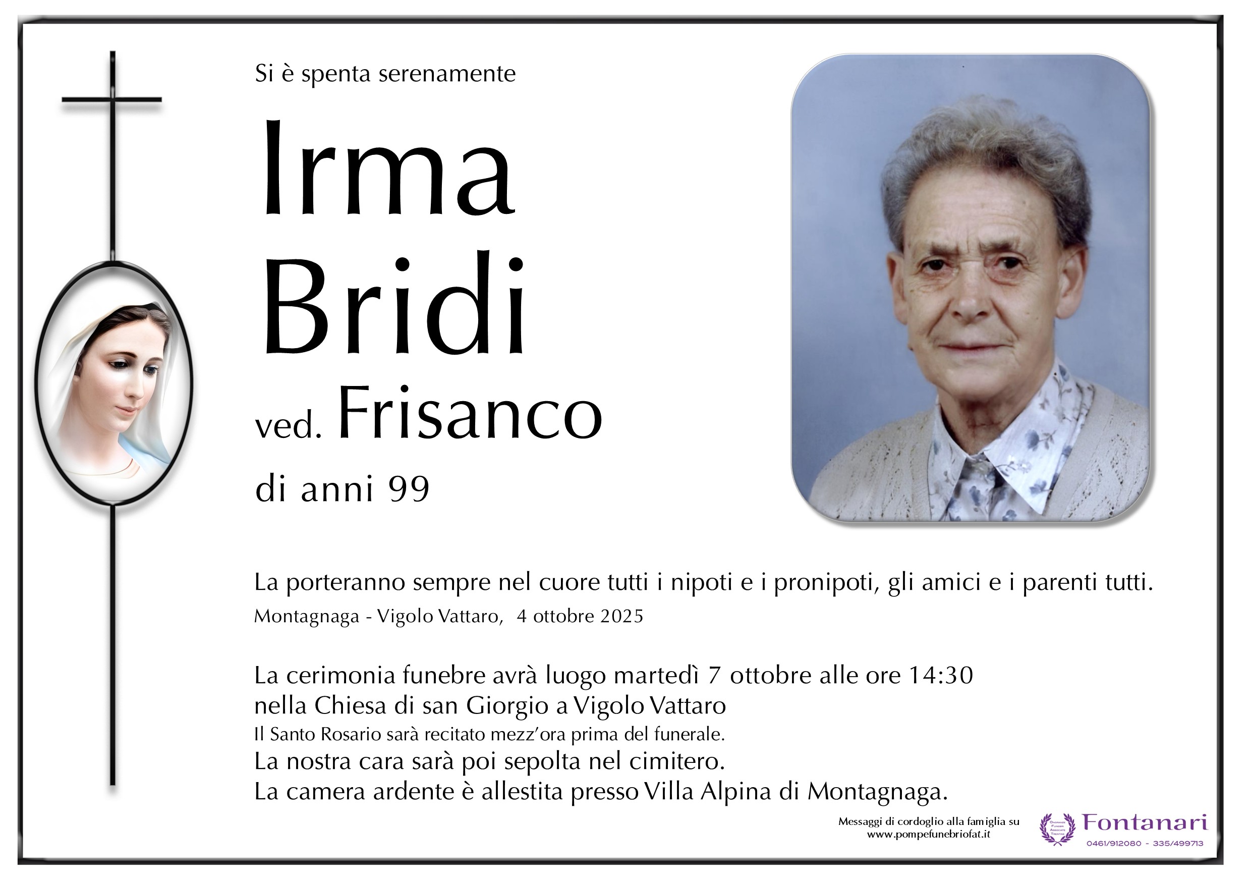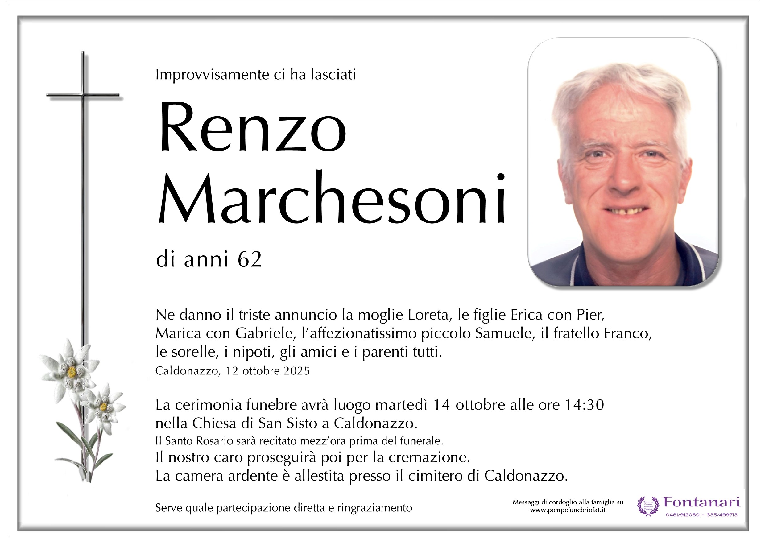 I funerali avranno luogo giovedì 16 ottobre alle ore 14:30 nella Chiesa Parrocchiale di Martignano.